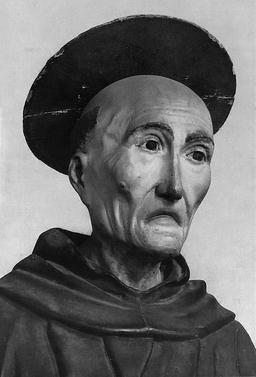The picture shows a sculpture of San Bernardino by Lorenzo di Pietro detto il Vecchietta